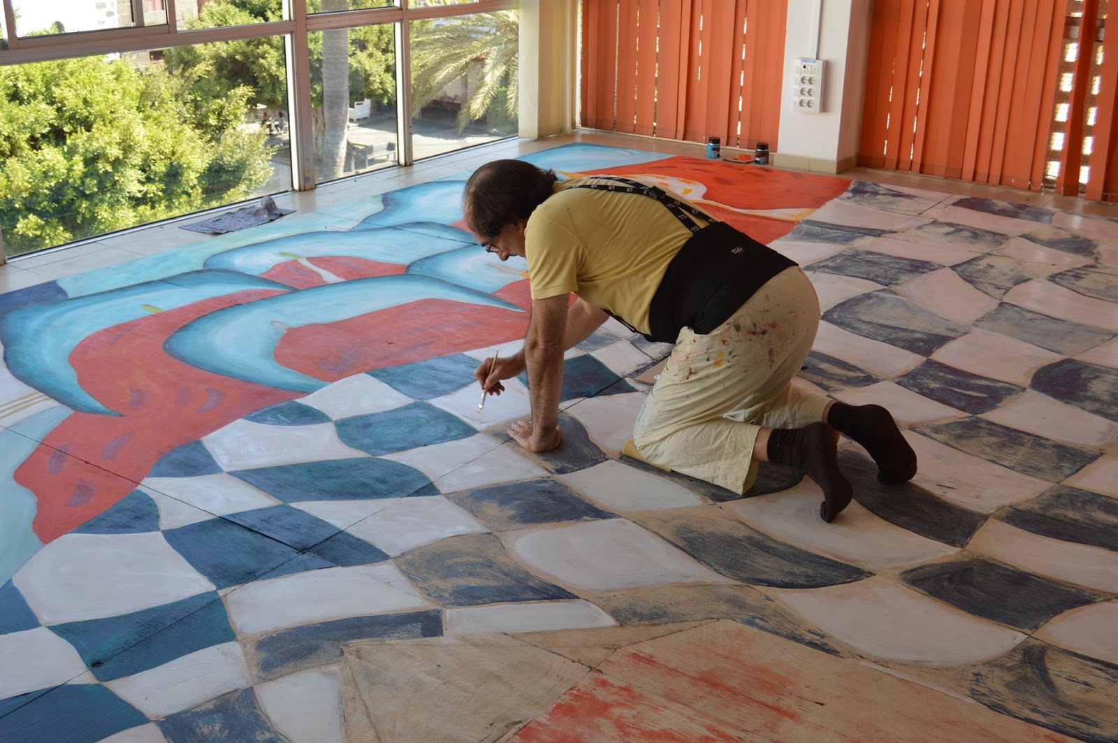 Desde el lunes 2 de Octubre, he estado interviniendo en el mural"La ciudad de la mirada", primera de las obras que se instaló en "La Ciudad en el Museo. Foro de Arte Contemporáneo (CEMFAC), en 2000. Aunque han sido días de intenso trabajo, dado el deterioro que sufría el cuadro, la faena concluyó muy satisfactoriamente.